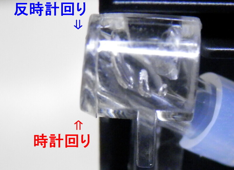 ん?これもしかして・・・ノズルの片側(手前側)を削ってなだらかにしてやれば時計回りのときにもひっかからなくなるのでは?
