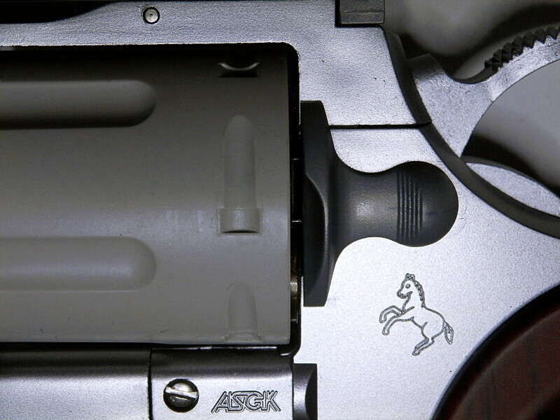 本体ですが、うーん、パイソン風のバレルと跳ね馬のマークがあるけど・・・やっぱりS&Wでしょ(^^;)